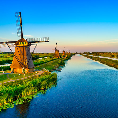 Déjeuner. La journée sera consacrée à la visite de Delft et des sites ayant fait sa renommée. Nous débuterons par une découverte à pied de la ville avant de profiter d’un point de vue différent lors d’une croisière. Dîner. En après-midi, visite d’une faïencerie en opération depuis le 17e siècle. Nous y apprendrons les secrets de fabrication de la poterie locale et de son bleu emblématique. Nous poursuivrons notre exploration des Pays-Bas par la visite de Kinderdijk, inscrite au patrimoine mondial de l’UNESCO, site unique pour admirer les moulins à vent. Retour à La Haye. Souper et nuitée.