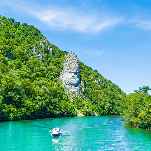 Déjeuner à bord. Le Danube devient la frontière naturelle entre la Roumanie et la Serbie. Après la traversée du barrage, débute le spectaculaire défilé des Portes de Fer. À cet endroit, le Danube se rétrécit et s’encastre dans les montagnes, formant d’impressionnantes gorges. Dîner et souper à bord.