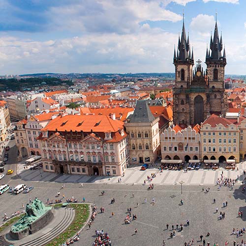 Déjeuner. Départ pour une visite guidée de České Budějovice et découverte de sa vieille ville, dominée par la vaste place Přemysl Otakar II, l’une des plus grandes d’Europe centrale. Continuation vers Český Krumlov. Son imposant château compte parmi les plus vastes ensembles castraux d’Europe et domine un centre historique inscrit au patrimoine mondial de l’UNESCO. Promenade dans ses ruelles sinueuses à la découverte des façades richement ornées des maisons bourgeoises et des boutiques traditionnelles. Dîner. En fin de journée, route vers Prague et installation à l’hôtel pour 3 nuits. Souper.
