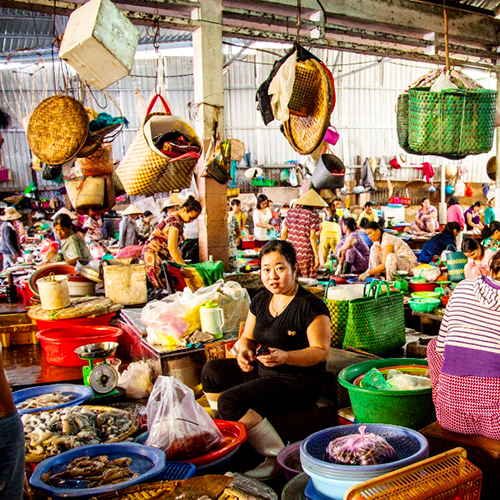 Déjeuner à bord. Arrivée à Sa Dec, où l’écrivain français Marguerite Duras a passé une partie de son enfance. Tour de ville pour s’imprégner de l’atmosphère empreinte d’une douceur méditerranéenne de cette ville animée du delta où subsistent quelques maisons coloniales. Visite de la « maison du Chinois », décrite dans L’Amant, transformée en petit musée, puis d’un temple caodaïste, religion syncrétique très présente dans le Sud du Vietnam. Découverte du marché local coloré. Retour à bord pour le dîner. Traversée de la province de Vinh Long, le « Dragon Majestueux », située au centre des régions du delta, entre deux bras du Mékong. Arrivée à Cai Be. Départ en petits bateaux locaux pour rejoindre l’île de Tan Phong. Nous découvrirons la confection d’objets de décoration à partir des jacinthes d’eau. Nous ferons un arrêt dans un jardin pour une initiation aux fruits exotiques. Avant le retour à bord, passage en bateau devant la cathédrale gothique de Cai Be et rencontre avec une famille confectionnant des feuilles de riz et des bonbons à la noix de coco. Souper à bord.