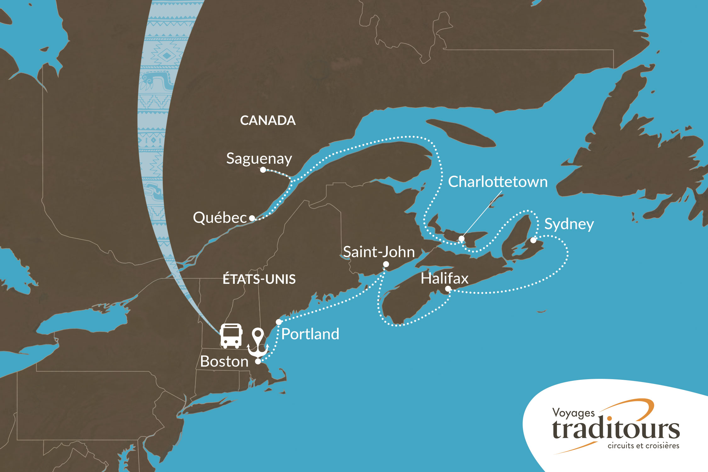 NOTES : Ce programme a été établi longtemps à l’avance en fonction des impératifs locaux connus. Des modifications peuvent donc survenir en raison de divers facteurs opérationnels, logistiques ou toute autre raison hors du contrôle de Voyages Traditours. Les compagnies de croisière se réservent le droit d’ajuster l’ordre des escales, de remplacer une destination ou d'adapter la durée des arrêts en fonction notamment des conditions de navigation et météorologiques. Ces changements peuvent être nécessaires en fonction des exigences portuaires, des décisions des armateurs ou d’autres impératifs jugés essentiels au bon déroulement du voyage. Voyages Traditours se réserve aussi le droit d’apporter des ajustements au programme, afin de garantir la meilleure expérience possible.