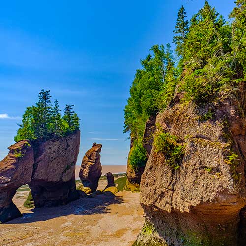 Le Nouveau-Brunswick s’enorgueillit de ses vastes forêts, de ses ruisseaux sinueux, de ses douces collines, de ses riches terres agricoles et d’une côte spectaculaire parsemée de villes historiques. La nature a également doté la région d’un phénomène naturel étonnant : les Reversing Falls, où les rapides du fleuve Saint-John s’inversent temporairement. Normalement, le fleuve s’écoule vers la baie, mais lorsque la marée monte, l’eau de la baie remonte la gorge rocheuse avec une telle force qu’elle inverse momentanément le cours du fleuve. L’histoire de Saint-John remonte à 1604, lorsque le sieur de Champlain débarqua à proximité, le jour de la fête de Saint-Jean-Baptiste. Après la Révolution américaine, de nombreux loyalistes s’installèrent dans la région, et Saint John devint un port industriel prospère.