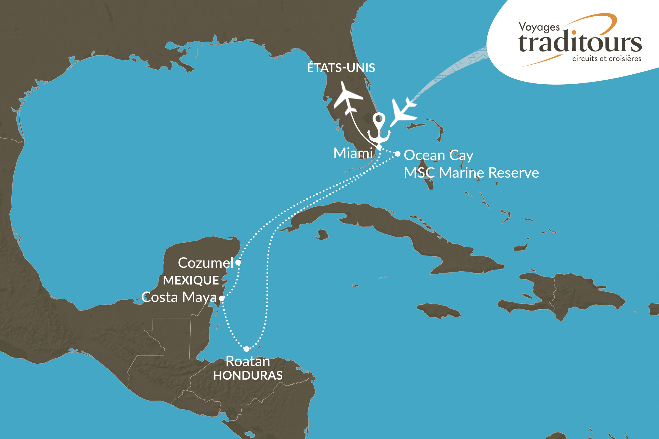 NOTES : Ce programme a été établi longtemps à l’avance en fonction des impératifs locaux connus. Des modifications peuvent donc survenir en raison de divers facteurs opérationnels, logistiques ou toute autre raison hors du contrôle de Voyages Traditours. Les compagnies de croisière se réservent le droit d’ajuster l’ordre des escales, de remplacer une destination ou d'adapter la durée des arrêts en fonction notamment des conditions de navigation et météorologiques. Ces changements peuvent être nécessaires en fonction des exigences portuaires, des décisions des armateurs ou d’autres impératifs jugés essentiels au bon déroulement du voyage. Voyages Traditours se réserve aussi le droit d’apporter des ajustements au programme, afin de garantir la meilleure expérience possible.