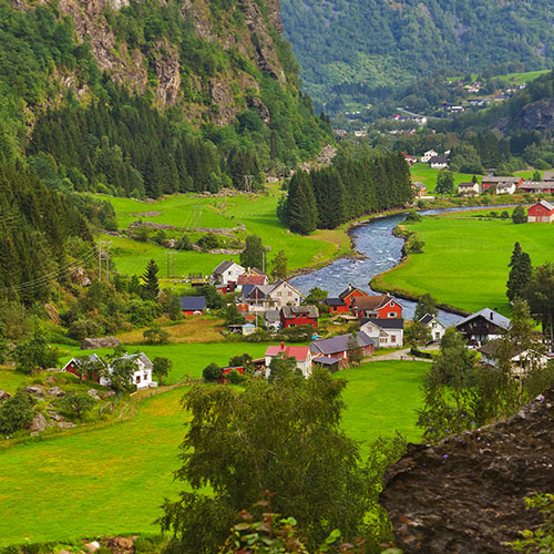 Située à l’extrémité de l’Aurlandsfjord, Flam est le point de départ du chemin de fer Flamsbana, qui parcourt environ 20 kilomètres jusqu’à Myrdal à travers un décor spectaculaire. C’est l’une des lignes les plus pentues au monde, accrochez-vous !
