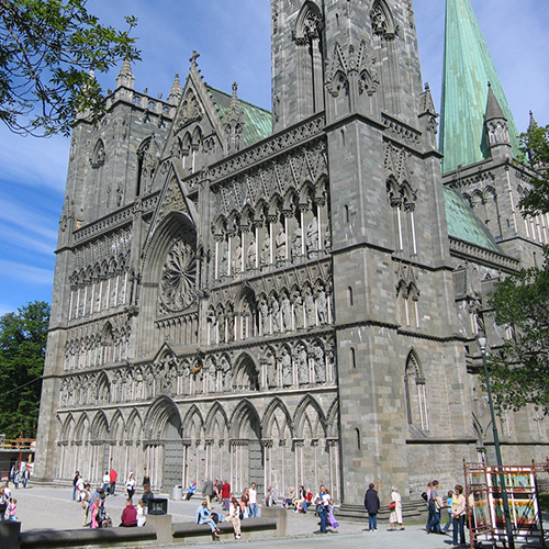 Trondheim, charmante ville historique, séduit par son vieux quartier pittoresque de Bakklandet, ses musées et sa majestueuse cathédrale gothique de Nidaros, la cathédrale médiévale la plus septentrionale du monde. Vous pourrez notamment visiter le musée folklorique Sverresborg. Construit autour des ruines du château Sion du roi Sverre, qui remontent à 1183, ce musée offre un aperçu riche et passionnant de l'histoire de Trondelag et de Trondheim. Avec son immense espace en plein air et sa grande collection de bâtiments historiques, vous remonterez plus de 1 000 ans en arrière et découvrirez la ville, la campagne et le château à travers des présentations vivantes et des reconstitutions authentiques.
