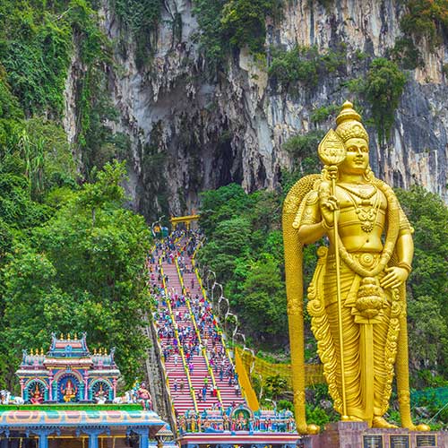 Départ pour une demi-journée de visite. Nous irons à la découverte d’un lieu mythique de la Malaisie. Situées à quelques kilomètres au nord de Kuala Lumpur, les grottes de Batu constituent l’un des sites les plus emblématiques de Malaisie. Ce spectaculaire ensemble de grottes calcaires, vieux de plus de 400 millions d’années, abrite un important sanctuaire hindou dédié au dieu Murugan, dont la statue dorée monumentale accueille les visiteurs à l’entrée du site. Après avoir gravi les 272 marches colorées qui mènent à la grotte principale, on découvre un vaste espace naturel baigné de lumière, où temples, autels et formations rocheuses cohabitent dans une atmosphère à la fois spirituelle et grandiose. Les grottes de Batu offrent ainsi une expérience unique, mêlant nature, culture et spiritualité, et constituent une visite incontournable lors d’un séjour en Malaisie. Nuit à quai.