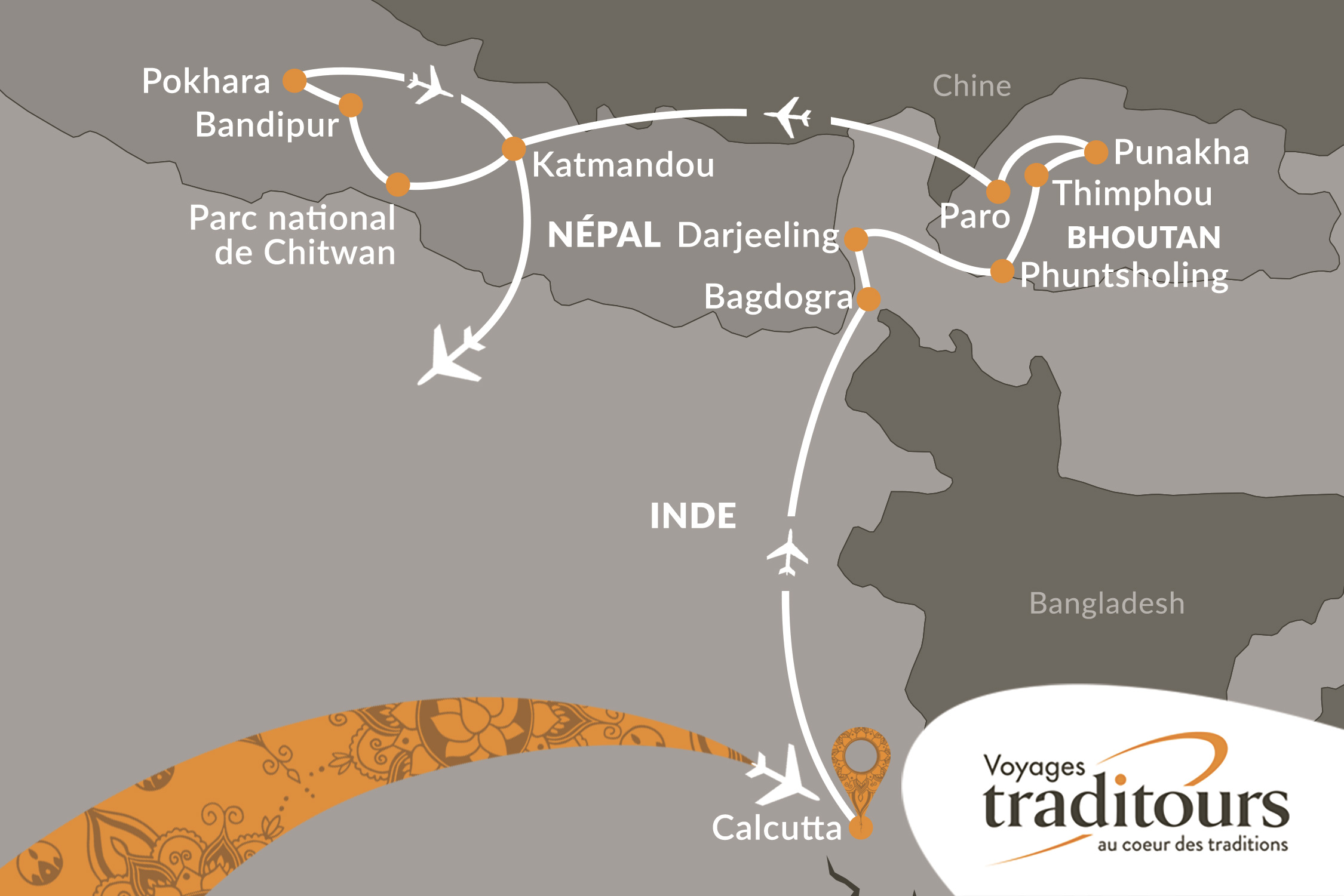 - Les vols internationaux Montréal / Calcutta, Paro / Katmandou & Katmandou / Montréal