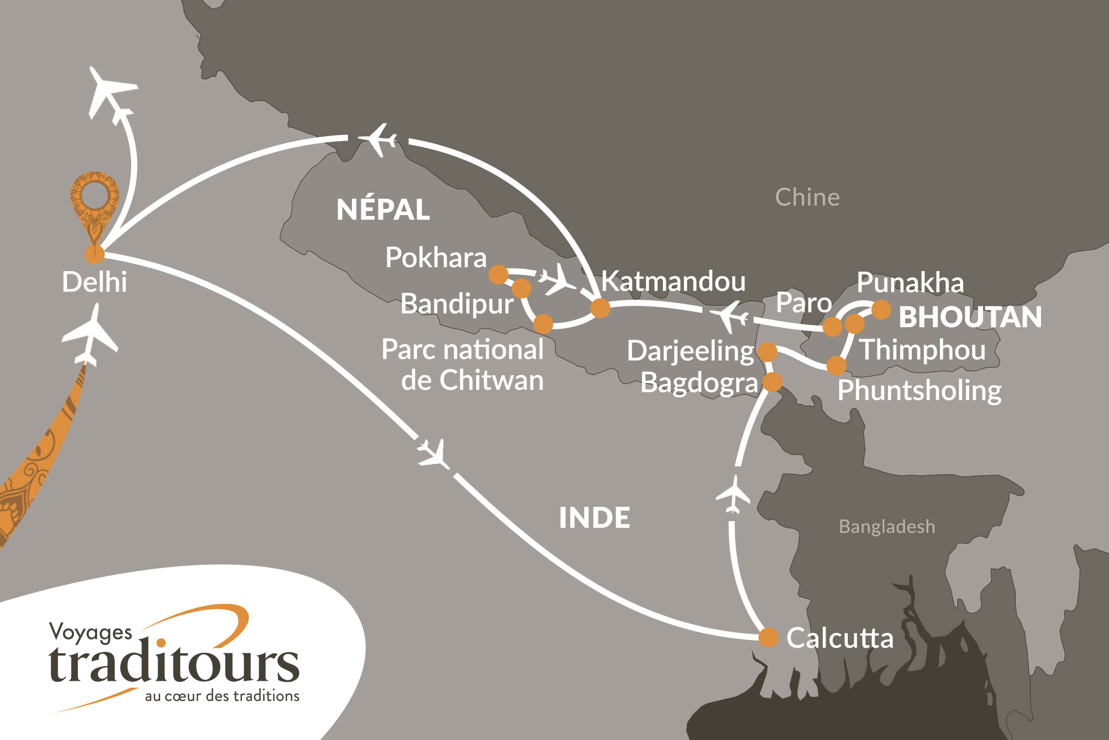 - Les vols internationaux Montréal / Delhi, Paro / Katmandou, Katmandou / Delhi & Delhi / Montréal
