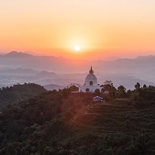 Déjeuner avant de prendre la route en direction de Pokhara, ville possédant une vue imprenable sur l’Annapurna, massif montagneux de l’Himalaya. Nous prendrons un téléphérique pour une ascension de quelques minutes jusqu’à Bandipur, village perché au sommet d’une colline. Ce trajet nous permettra d’admirer les paysages environnants, avec ses collines et vallées pittoresques. Dîner. Balade à travers le village pour s’imprégner de la quiétude des lieux et découvrir, au détour de ruelles animées, des traditions culturelles et architecturales préservées. Poursuite de la route, qui traversera une magnifique campagne et de superbes panoramas. Arrivée à Pokhara et installation à l’hôtel. En fin d'après-midi, transfert pour visiter le Stupa de la paix mondiale. D’un blanc éclatant, il offre un havre de paix et une vue imprenable sur le lac Phewa et les montagnes. L'atmosphère paisible et les drapeaux de prière flottant au vent créent une expérience véritablement apaisante et propice à l’observation du coucher du soleil. Promenade nocturne au marché local avant de rentrer à l'hôtel. Souper. Nuit à Pokhara.