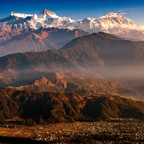 Départ matinal vers un téléphérique, afin d’effectuer un trajet de quelques minutes jusqu'à la colline de Sarangkot, située à 1600 m d’altitude. À l'arrivée, transfert jusqu'à un point de vue où nous pourrons savourer un thé ou un café agrémenté de biscuits, tout en admirant le soleil qui se lève sur l’Annapurna. Déjeuner sur place, avec une vue imprenable sur les montagnes à la lumière du jour. Retour à Pokhara. En chemin, visite du temple de Bindhyabasini. Par la suite, nous irons découvrir le Musée international de la montagne, qui retrace l'histoire de l'alpinisme et présente les cultures montagnardes ainsi que la biodiversité du Népal. Dîner. En après-midi, promenade en bateau sur le lac Phewa. Souper. En soirée, rencontre avec un sherpa alpiniste, qui partagera ses anecdotes et présentera le mode de vie des sherpas. Nuit à Pokhara.