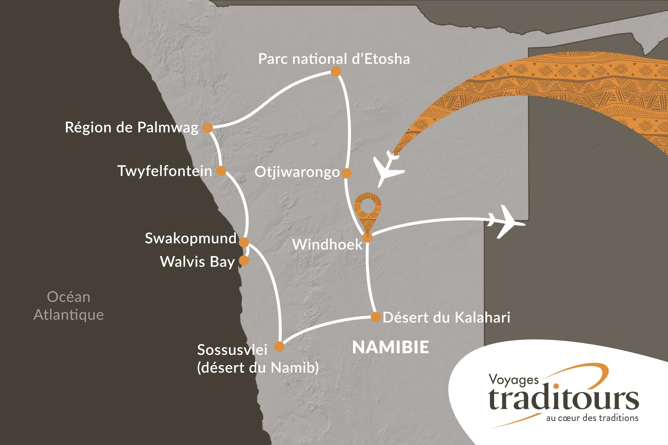 - Les vols internationaux Montréal / Windhoek / Montréal