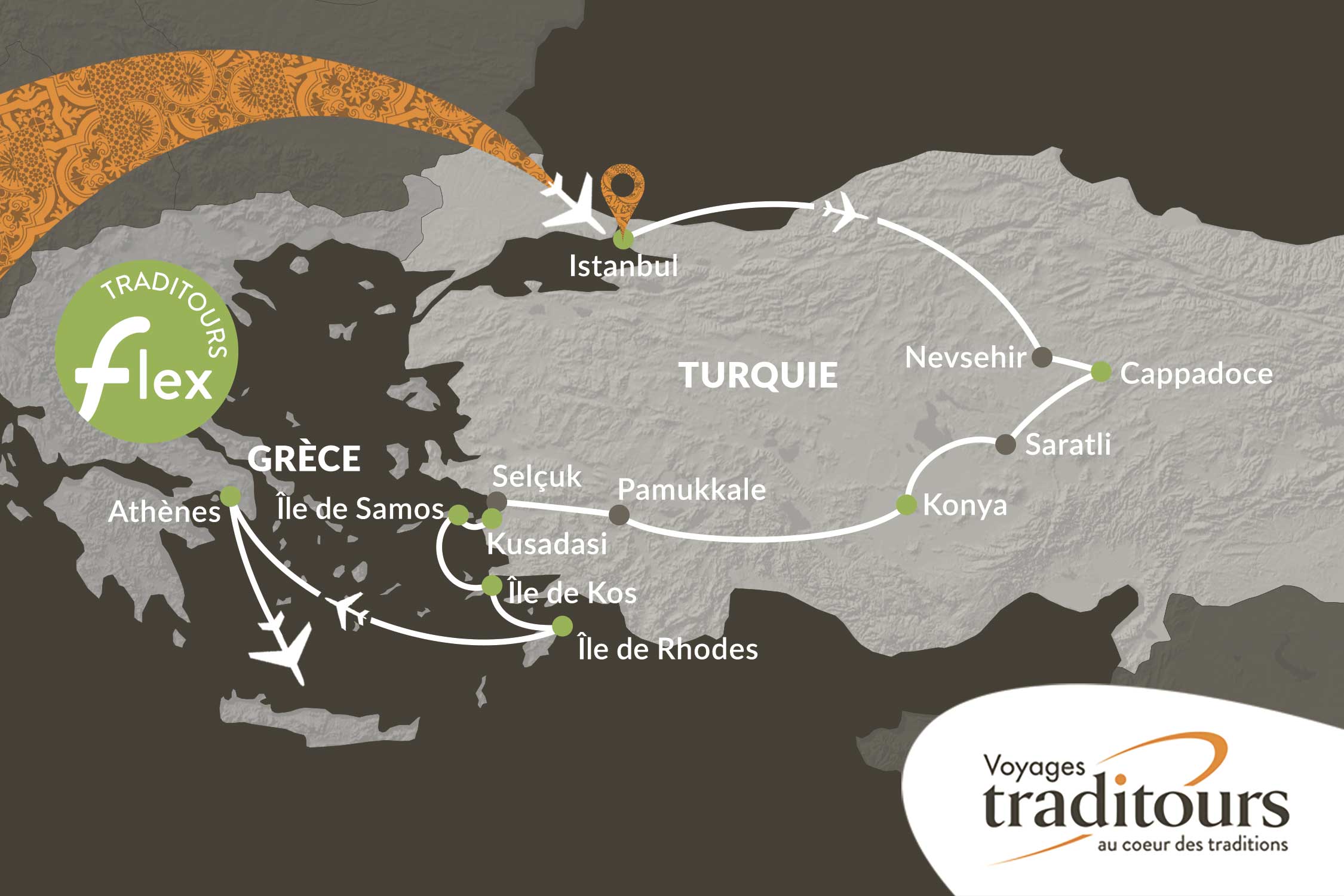 - 15 nuitées : 8 en hôtels de charme, 3* supérieurs et 4* en Turquie, et 7 en hôtels 4* en Grèce (selon les normes locales)