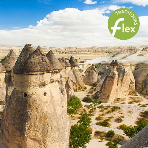 Nos voyages Traditours Flex sont conçus à partir de nos circuits terrestres réguliers, mais vous offrent une formule différente. Il s'agit d'un séjour idéal pour les gens qui sont à la recherche d’un peu plus de liberté lors d’un voyage de groupe organisé. Effectivement, vous serez en compagnie d’autres voyageurs, de votre guide national et de votre accompagnateur pour ce voyage, mais bénéficierez également de moments libres. Des temps libres et des repas libres sont judicieusement choisis tout au long de votre parcours. Laissez-vous guider et évadez-vous à des moments opportuns, selon l’itinéraire de votre voyage!