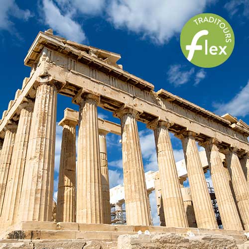 Déjeuner. Découverte à pied du magnifique site de l’Acropole. Notre guide nous fera vivre toute l’histoire d’Athènes d’hier à aujourd’hui. Dîner libre dans le quartier de Monastiraki, suivi d'un après-midi libre pour profiter de la ville à notre rythme. En soirée, départ vers le quartier de la Plaka et souper d’au revoir avec musique folklorique grecque. Nuit à Athènes.